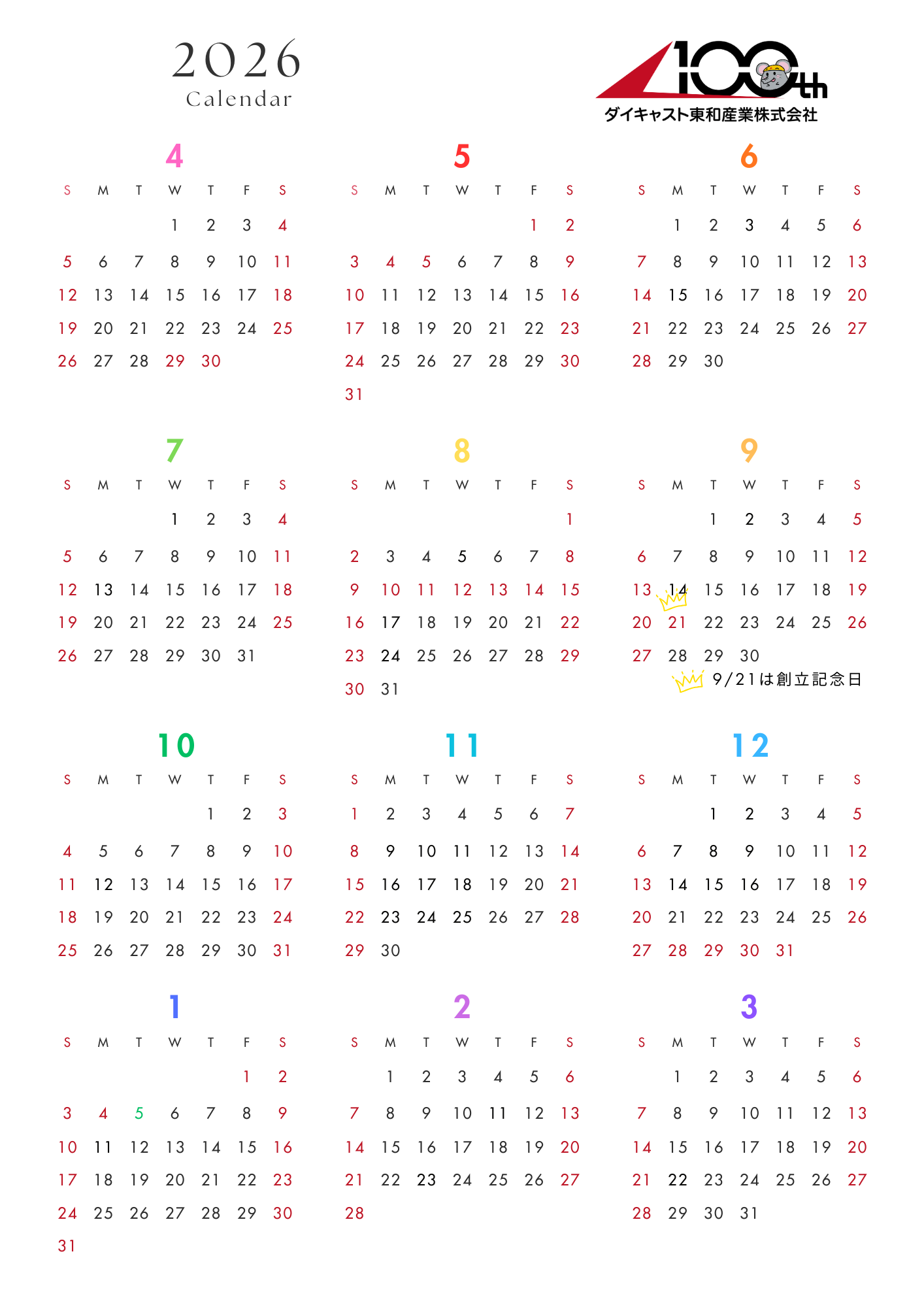 会社カレンダー