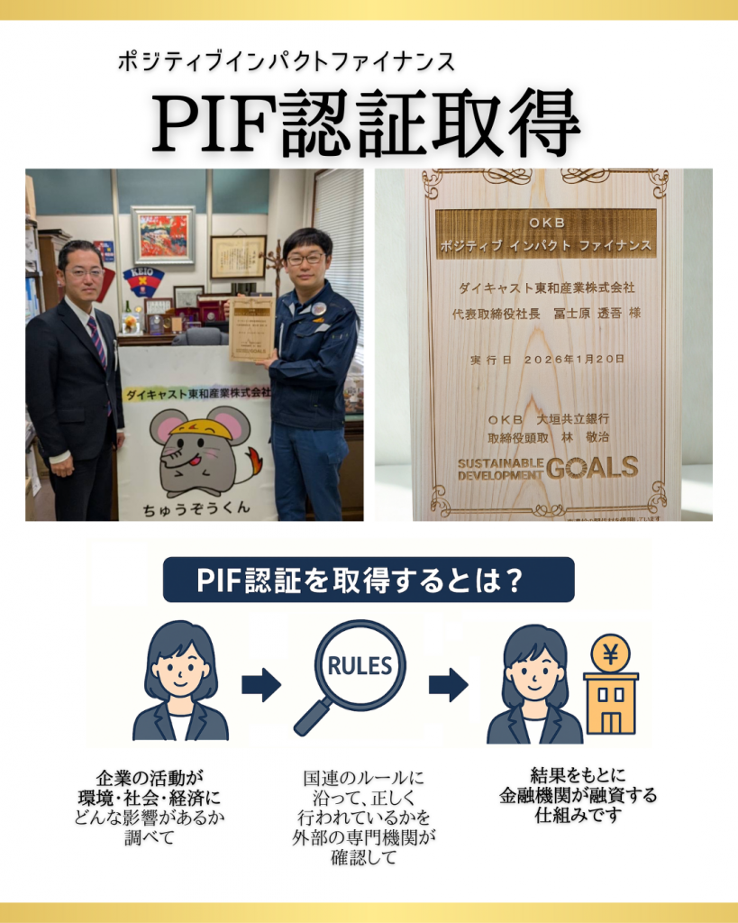 “Positive Impact Finance (PIF)” certification from Ogaki Kyoritsu Bank.