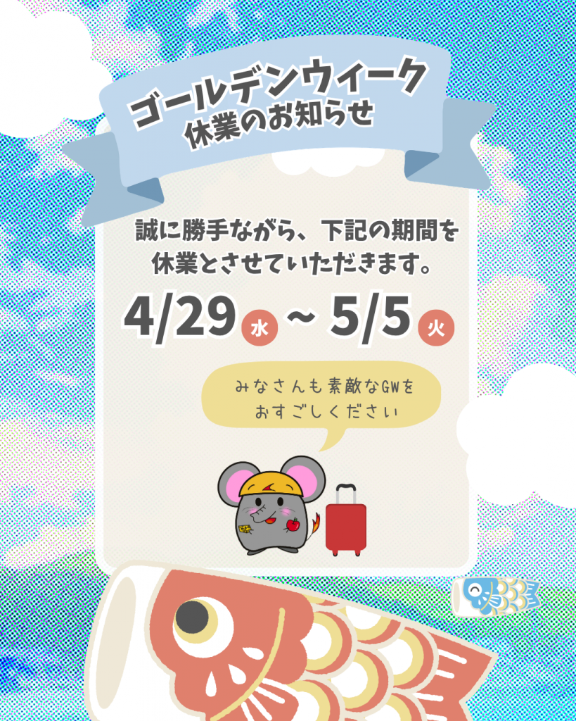 休業期間中は、皆さまにご不便をおかけすることもあるかと存じますが、